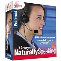 Write business letters, e-mail, and reports by voice with Dragon NaturallySpeaking 5.0 Preferred. This full-featured speech-recognition product is designed for the creation and editing of text documents, reports, and e-mails in a small-office/home-office environment. Version 5.0 features improved accuracy from a company already recognized for its accuracy. Make corrections faster and easier with the new, convenient Quick Correct Box. Learn with a hands-on tutorial that leads you through basic dictation techniques. Dictate into popular e-mail programs, or use voice commands to send and manage your mail. Use the new Add Words from Document feature to add terminology quickly. Get started promptly--all machines that meet the minimum system requirements of the software now learn your voice in under five minutes. Advanced features include Text-to-Speech, letting you listen to your work, hearing any text--such as incoming e-mail--read aloud; Dictation Playback, to help your editing and proofreading; and Commonly Used Text, which allows you to create dictation shortcuts so you can insert multiple lines of text (such as a letter closing) with only a few words. Dragon NaturallySpeaking 5.0 Preferred also supports the transcription of your words directly into documents from approved portable recording devices (sold separately).